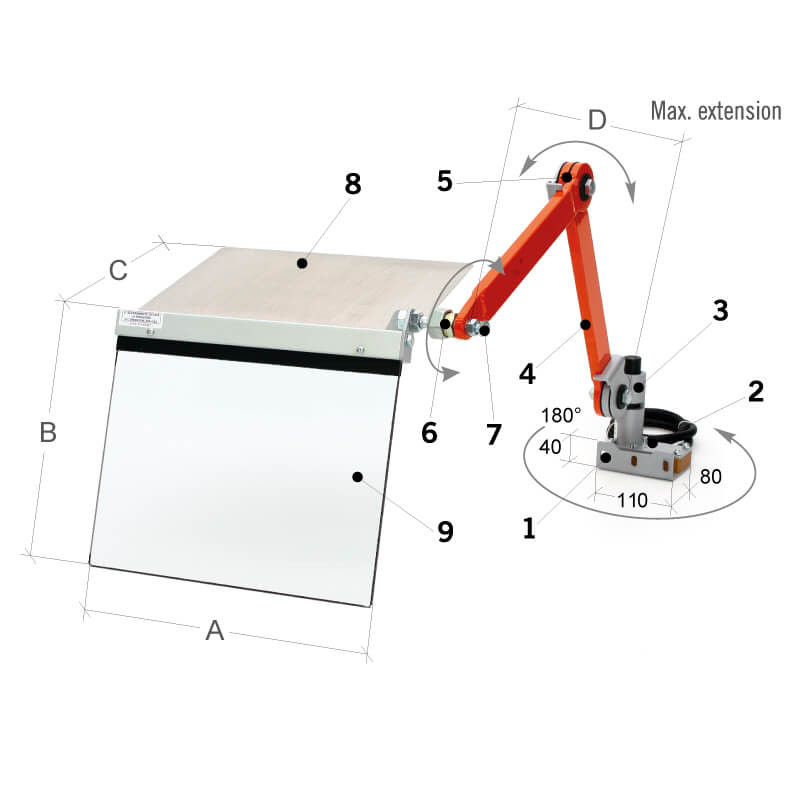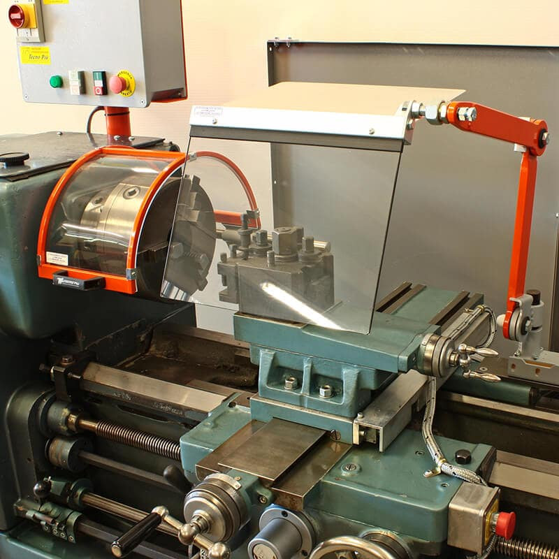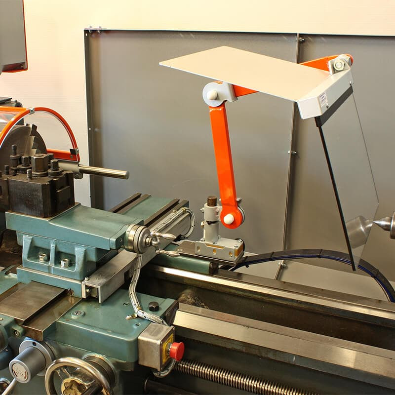 Designed to maximize operator safety, the MST-TO10/11 guard mounts behind the lathe’s longitudinal carriage and is supported by a robust articulated arm attached to a fully adjustable anchoring point. Due to its tubular steel structure and friction-disk joints, the shield can be positioned easily to suit various turning operations. Other available accessories.