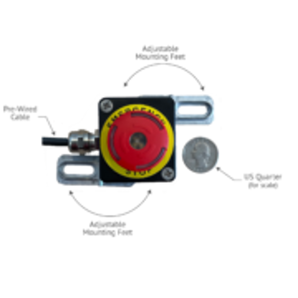 This System installs upstream of existing machinery controls to bring it into OSHA compliance. Includes an emergency-stop button on a remote tether for convenient mounting.