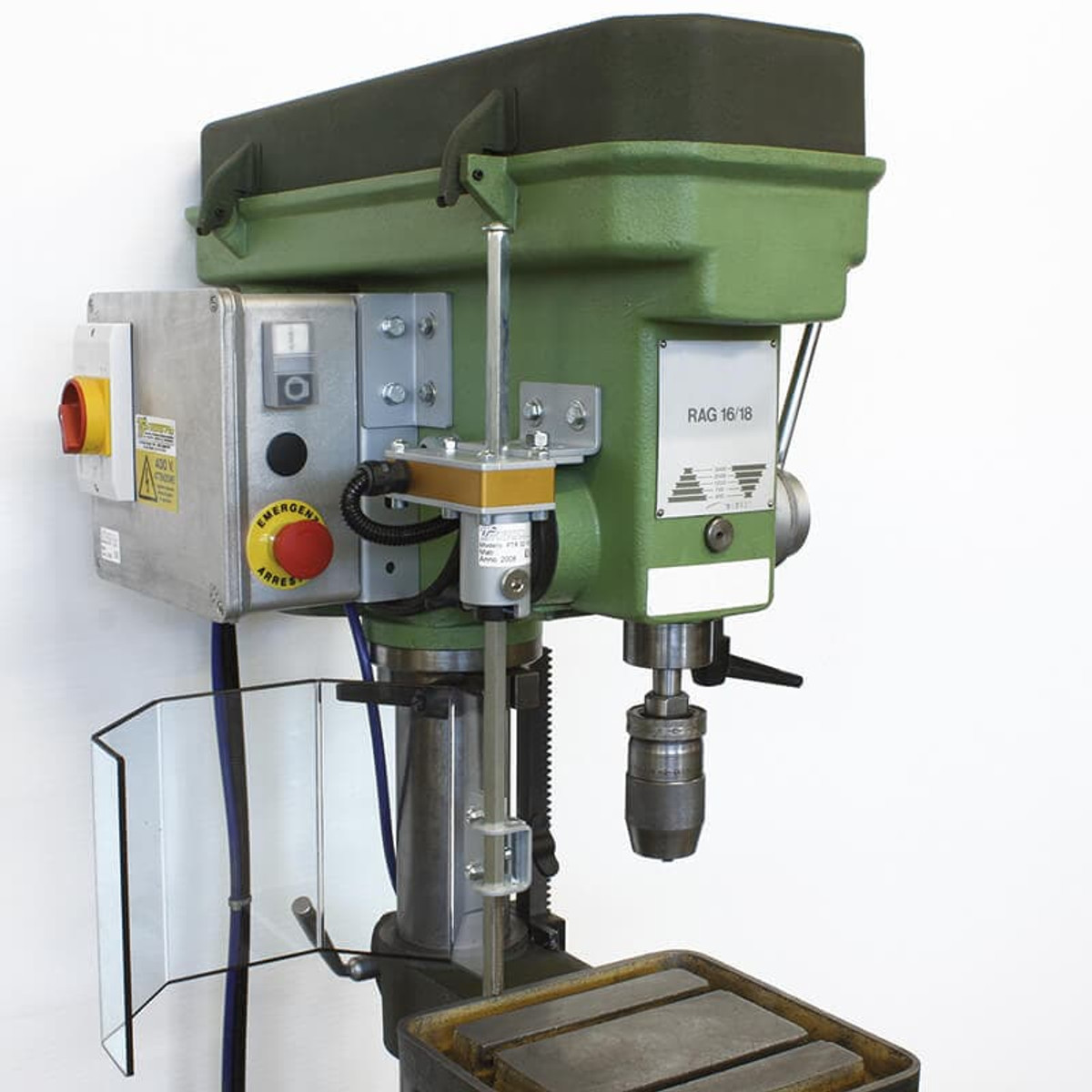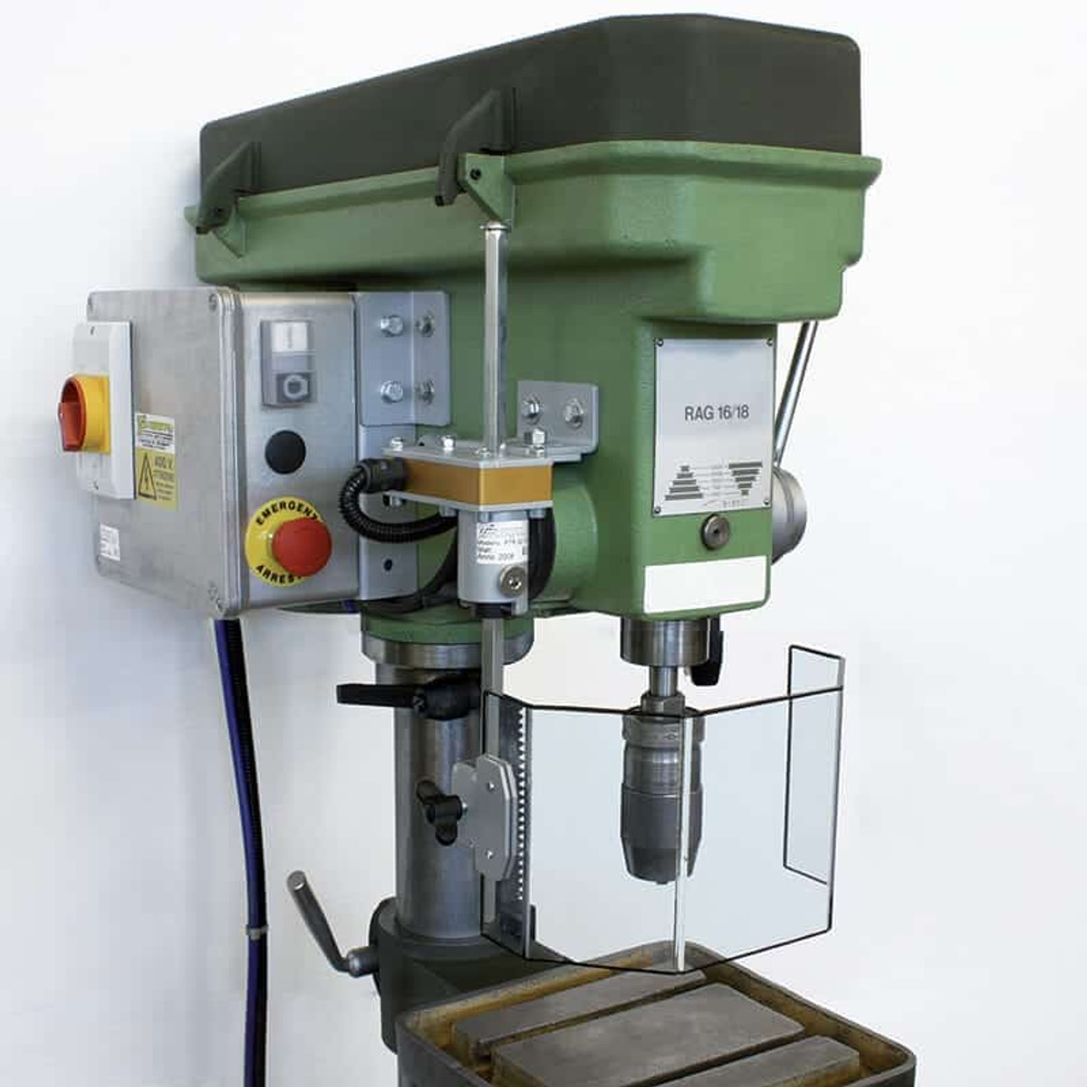 Solid and versatile, this sideway safety guard is the only one with double shield adjustment. Suitable for installation on drill press, traditional drills and similar machines.